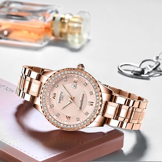 - 💎 Water Resistance: With a 3ATM (100 feet) rating, NIBOSI rose gold dial ladies wrist watch is water resistant up to 30 meters, making it suitable for daily activities such as accidental rain, hand washing, or splashing. However, it is not suitable for swimming, diving, or showering.